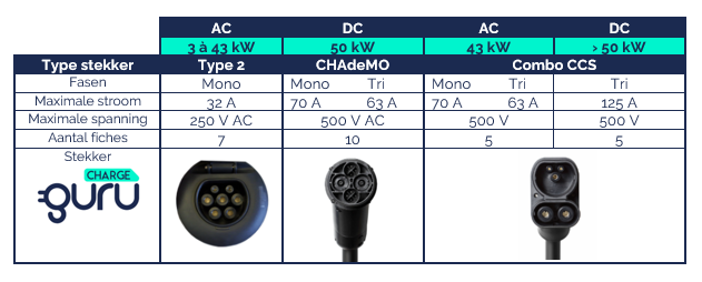 Om uw elektrisch voertuig op te laden, is het essentieel om het type aansluiting van uw voertuig te identificeren, zodat u de juiste aansluiting voor het laden kunt selecteren. Naast het type aansluiting is een belangrijk aspect het maximale vermogen in kW dat het voertuig kan ontvangen.