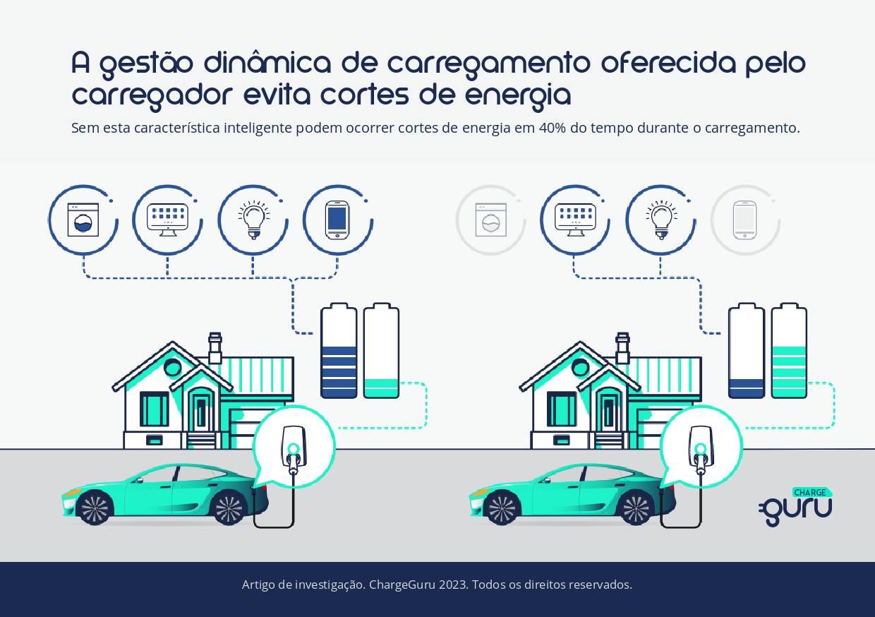 Ao carregar em casa, os picos de consumo de eletricidade aumentam. Uma wallbox com um sistema de balanceamento de cargas permite evitar os cortes de energia. Sem este sistema inteligente, cortes de energia podem ocorrer em 40% do tempo durante o carregamento do seu carro.