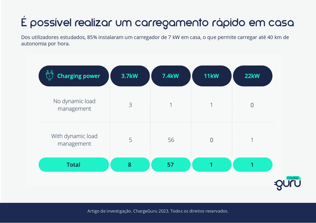 Utilizadores que participaram ao estudo, instalaram em maioria carregadores de 3,7 kW ou 7,4 kW. O que significa que não precisam de um carregador mais potente em sua casa.