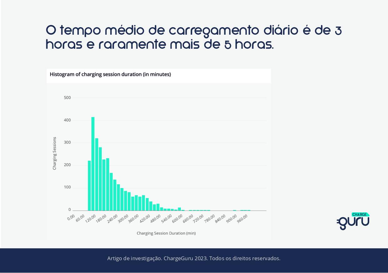 Quando carregam em casa, geralmente as sessões de carregamento são curtas: em média duraram cerca de 3 horas e raramente mais de 5 horas.