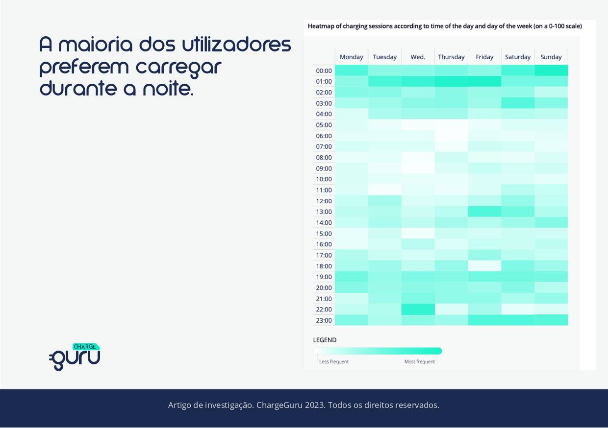 A maioria dos utilizadores prefere carregar durante a noite. Vimos que dois terços das sessões de carregamento foram realizadas durante este período.